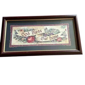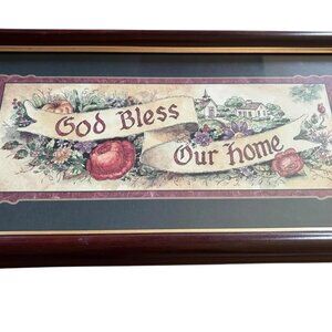 Home Interior "God Bless Our House" picture. Nice wood frame and glass pane. Hanger.