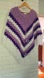 Stylish crochet poncho in shades of purple and white. Features a fringe detail.