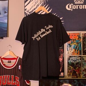This vintage Hooters New York City T-shirt brings a classic, laid-back vibe with its iconic graphic and well-worn charm. Featuring a simple yet bold design that nods to the famous NYC location, it offers an easy, everyday fit that pairs effortlessly with casual looks. The soft, lived-in feel adds to its nostalgic appeal, making it a great piece for anyone who loves collectible tees with character and a touch of retro attitude.