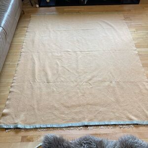 Vintage Horn Bros Woollens Lindsay 100% Wool Green Yellow Blanket 66 x 80"