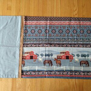 Vintage Horse Pillowcase Farm Barn Country Western Scene Handmade Pillow Case