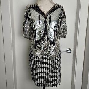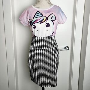 Monochrome Black & White Stretch Houndstooth Pencil Skirt, by Seduction.