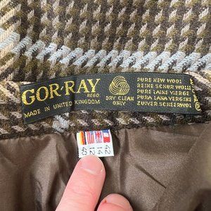 Vintage Houndstooth Plaid Tweed High Waisted Pleated Midi Skirt Preppy Academia