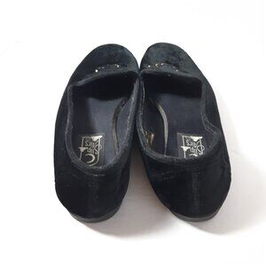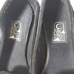 Vintage House Slippers Womens 11 Black Velvet Gold Embroidered Lounge Spain