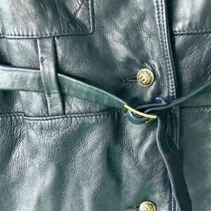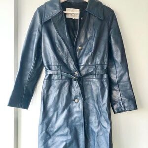 Vintage navy blue soft, stretchy leather coat. Features a belt and gold buttons. Super rare and unique find. Authentic Hudson’s Bay Company. Never worn. Size small or fitted medium