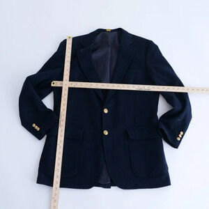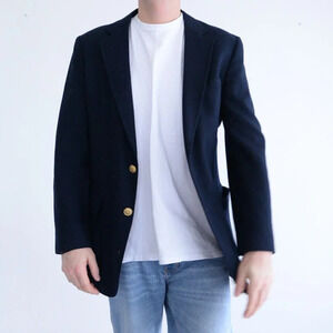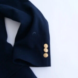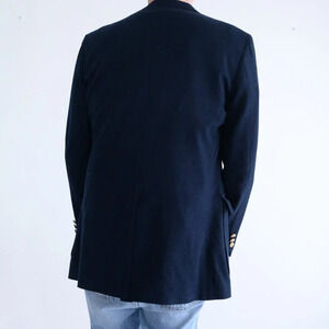 Introducing the Vintage Hudson's Men's Store Navy Double Gold Button 100% Wool Blazer β a timeless piece that seamlessly blends sophistication with vintage charm.