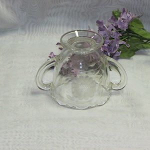 Vintage Hughes Cornflower Footed Glass Sugar Bowl Cottagecore Clear