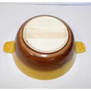 Vintage Hull Pottery Oven Proof Yellow Brown Divided Serving Dish Bowl