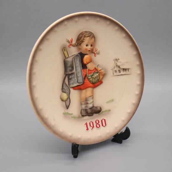 Vintage Hummel School Girl 1980 9th Annual Plate Flute Bird Hum 273