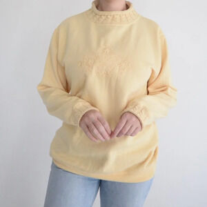 Vintage Hunt Club Yellow w Floral Design Mockneck Sweater S