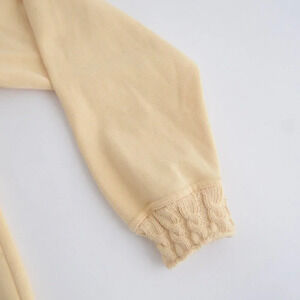 Crafted with meticulous attention to detail, the soft yellow hue serves as a canvas for the intricate floral pattern, lending a touch of whimsy and romance to your ensemble. The mockneck design adds a hint of vintage flair, while the high-quality knit ensures both comfort and durability.