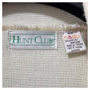 Embrace the classic appeal of the Vintage Hunt Club cardigan, a timeless addition to any wardrobe. This medium-sized, off-white sweater exemplifies the understated elegance of the 90s theme, tailored for a regular fit that ensures both comfort and style. Adorned with refined gold buttons that add a touch of sophistication, this cardigan is as versatile as it is fashionable.Ideal for hunting and outdoor activities, this cardigan embodies the practicality needed for a variety of settings. The beige hue complements a range of outfits, making it a perfect layering piece. With its roots in the esteemed Hunt Club brand, this sweater promises to deliver both quality and enduring style.
