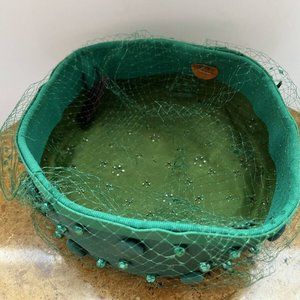 Vintage Hunter Women's Green Pillbox Hats Size W9xH2 w/ Button Studded and Lace.