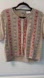 Vintage Huntington Ridge Beige Cardigan w/Red Blue Floral Patterns, Size M