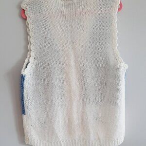 Really sweet white/cream and blue floral knit vest
