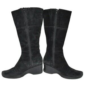 Vintage Steps by Hush Puppies Leather Suede Wedge Winter Boots Tall Black