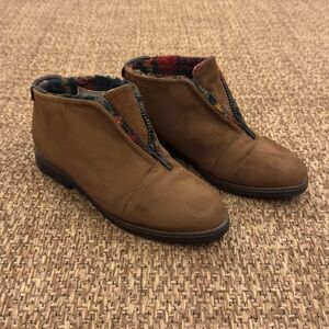 Vintage Hush Puppies Suede Plaid Sherpa Lined Ankle Boots with Zipper