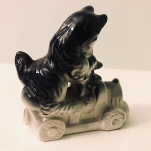 Vintage Husky Dog and Puppy on Small Train 3 Inch Long Figurine Japan