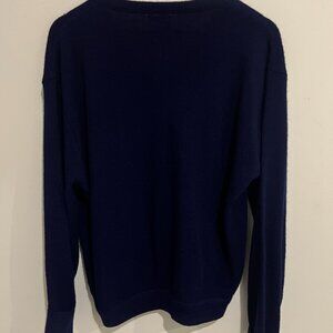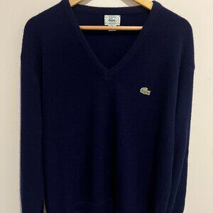 Vintage Izod Lacoste navy blue V-neck pullover sweater.