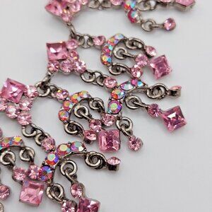 Pictures don't do this necklace justice. It is so sparkly with diamond and round shaped Swarovski crystals and crowned with Pink AB crystals in a gorgeous cascading design. Very well made with quality that looks like a Sherman. Absolutely Stunning and the design is very rare. In excellent condition. Please see my other listings for more great vintage finds.