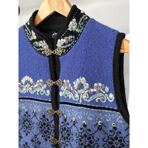 Vintage Icelandic Design 100% Wool Vest Women’s Medium Metal Clasp Floral