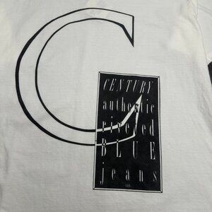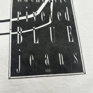 Vintage Ikeda Century Riveted Blue Jeans Graphic Tee White
