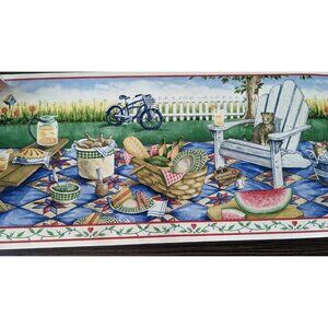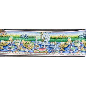 Vintage Imperial Garden Picnic Wallpaper Border – 5 Rolls NOS Factory Sealed - one roll opened and resealed for listing photo purposes