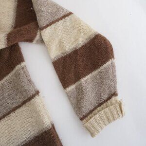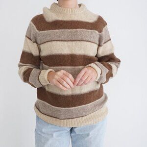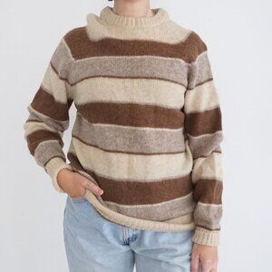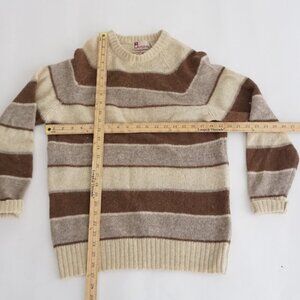 Vintage Impulse Cream Brown Stripe 100% Wool Grandpa Crewneck Sweater M