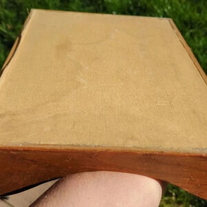 Wooden Vintage in box for the top of the desk. Probably my Grandfather's from the 1940's. Some stains. Fabric bottom.