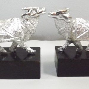 Vintage Indian Silvertone Metal Sheep Ornaments