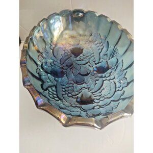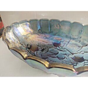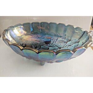 Vintage Indiana Carnival Large Glass Footed Harvest Fruit Bowl Iridescent Blue