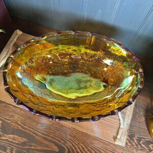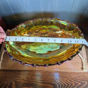 Vintage Indiana Glass Harvest Grapes Carnival Glass Footed Oval Fruit Bowl