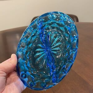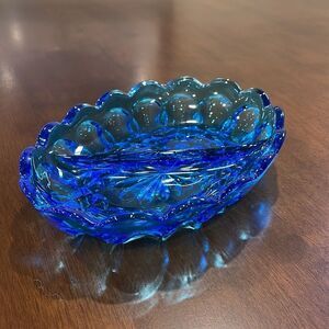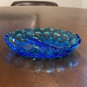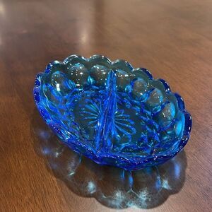 Vintage Indiana Glass Blue Oval Divided Candy Dish/Relish Tray 7” inches