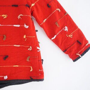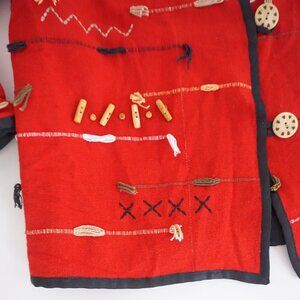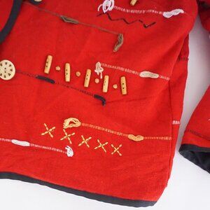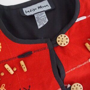 Vintage Indigo Moon Red 100% Cotton Beaded Embroidered Button Up Jacket M