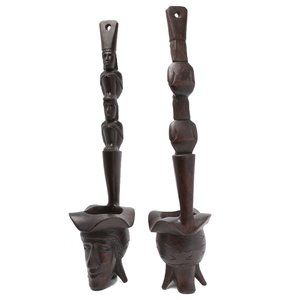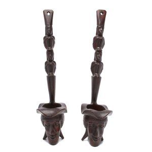 Vintage Indonesian Hand Carved Wood Tribal Figural Water Dipper Ladle Wall Decor