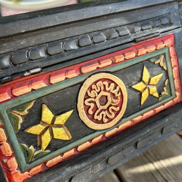 Vintage Indonesian/southeast Asian Keepsake Box Hand Carved Wooden Hand Painted