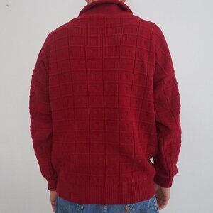 Vintage Ingo Maroon 3D Pattern Eclectic Grandpa 100% Wool Collared Sweater M