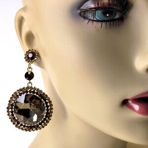 In citrine or honey hues with an inner circular frame of amber colored crystal rhinestones