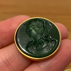 Vintage Intaglio Forest Green Victorian Era Style Earrings