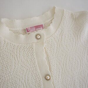 Vintage Intense Functionals Cream Eyelet Button Up Cardigan Sweater Size 38