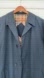 Dark blue vintage trench with hidden button placket closure and cuff tab detail.