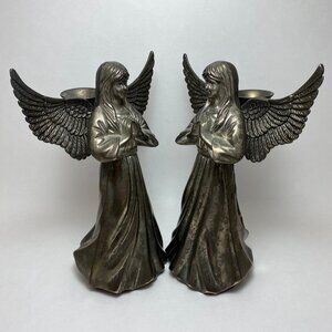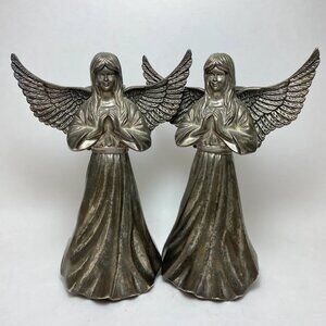 Add a touch of elegance and spiritual charm to your home with this vintage set of two candle holders from the International Silver Company. Featuring arch angels with praying hands, these pieces bring both beauty and reverence to any room. Perfect for mantles, shelves, or as part of a holiday or everyday display, they make a thoughtful gift or collectible addition to your vintage home decor.