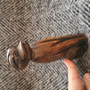 Faux wood carving depicting a Inuit man I believe with sled dogs maybe huskies .