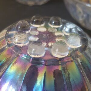 • 🌸 Style: Vintage pressed glass, clear with rainbow sheen