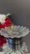 This stunning vintage iridescent fluted glass bowl features a radiant daisy-petal design with a central opening, catching light beautifully with its rainbow sheen. A perfect mid-century serving or display piece, this bowl blends elegance and functionality, ideal for collectors of vintage pressed or carnival-style glass.