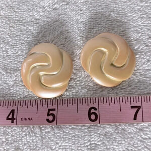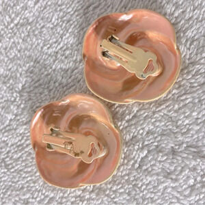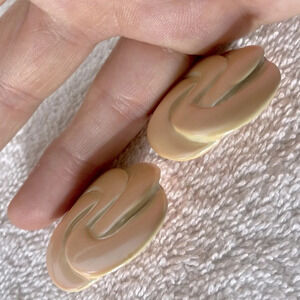 Vintage Iridescent Peach Textured Painted Metal Clip On Earrings