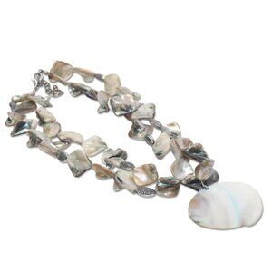 Capture classic, timeless elegance with this beautiful vintage jewelry set. This matching necklace and earring pair features stunning natural elements, including iridescent Mother of Pearl (MOP) shell accents and silver beads.