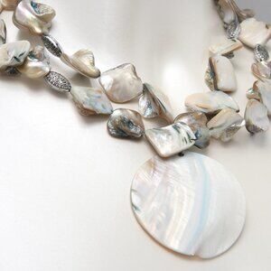 Vintage Iridescent Pearl Mother of Pearl Shell Necklace & Earring Set Coastal