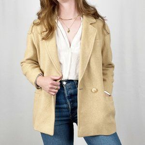 Lovely Vintage oversized camel hair tan blazer peacoat jacket from Henry White Dublin. High quality and perfect for fall, winter, or chilly offices/schools. Looks great on the model who is a size 6 or 8, with a pair of jeans and a button-down or go full academic with a turtle neck.