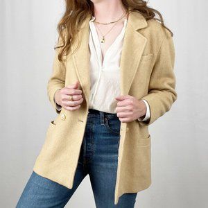 Vintage Irish Camel Hair Tan Oversized Blazer Jacket Long Trench Pea Coat Preppy